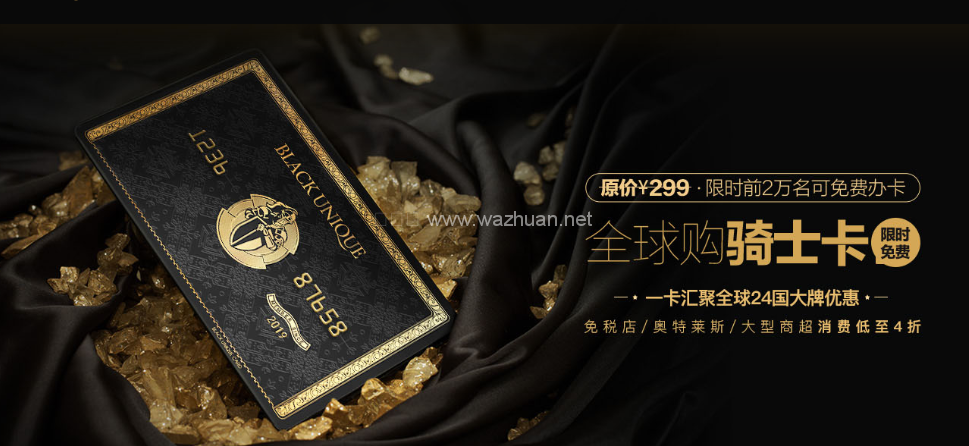 全球购骑士卡是一张汇聚海内外购物折扣、会员专属特权的综合权益卡。会员尊享大牌购物4折起、全国282城加油9折起、视频网站会员充值6折起等超100项专属特权。